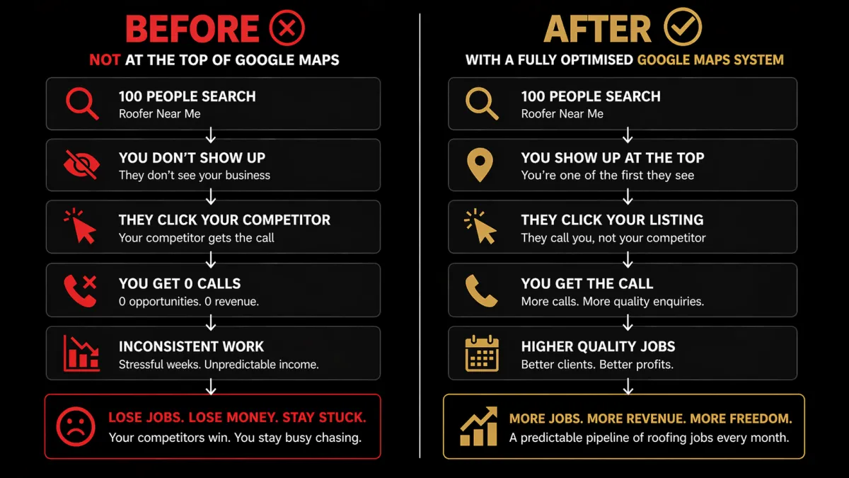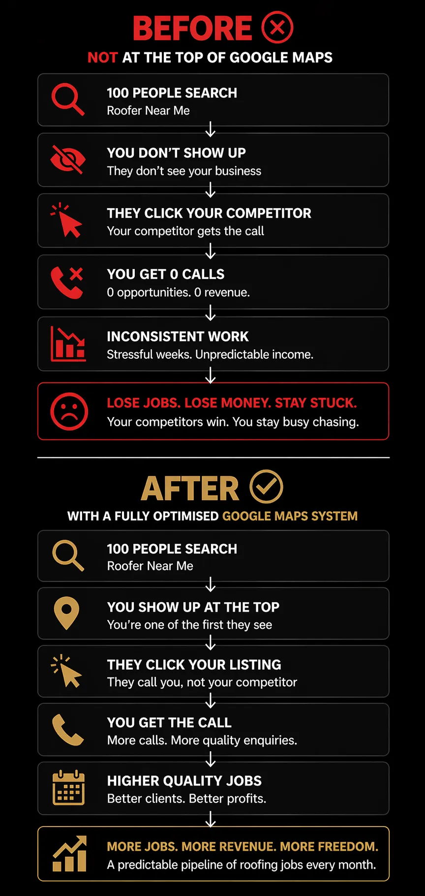 Most services focus on generic SEO or ads. This is focused specifically on getting you visible at the exact moment people are searching for a roofer in your area — which is where the highest intent jobs come from.